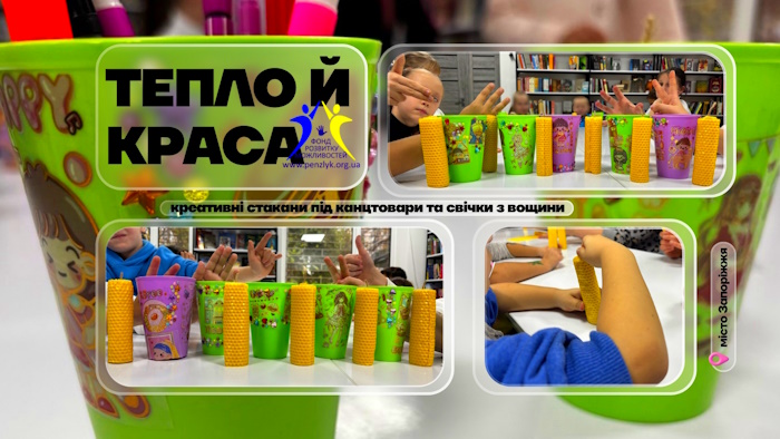 Запальні руханки та міні-змагання, повторення техніки безпеки та майстрування свічок з натуральної вощини, цікаві знайомства та створення авторських стаканів-підставок під канцтовари. Тепла зустріч з неповторними рукотворами. 🎁